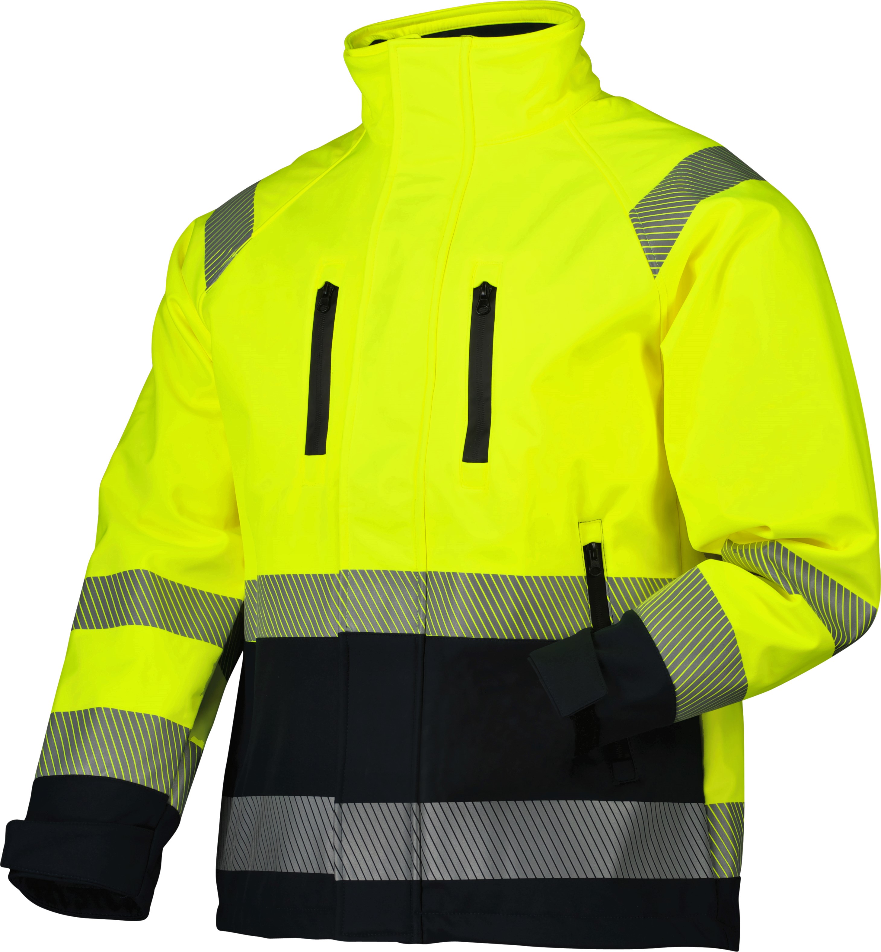 NordWear Softshell jacket hi-vis class 3, a very comfortable and stylish softshell jacket with outer fabric in the stretch. The reflectors are cut for a long life. The jacket is wind and water-resistant and has a high collar to protect against the cold. There is plenty of storage, including two front pockets with zippers and two chest pockets with zippers, as well as an inner pocket.